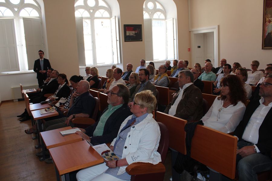 die zukünftig in Dubrovnik an die Gäste aus dem Rheinland erinnern soll. Dabei entwickelte sich nach einem Fachvortrag eine intensive Diskussion über die Chancen der kroatischen Wirtschaft im europäischen Umfeld. Notwendige Investitionen und die bis heute spürbaren Spätfolgen des „Balkan-Kriegs“.